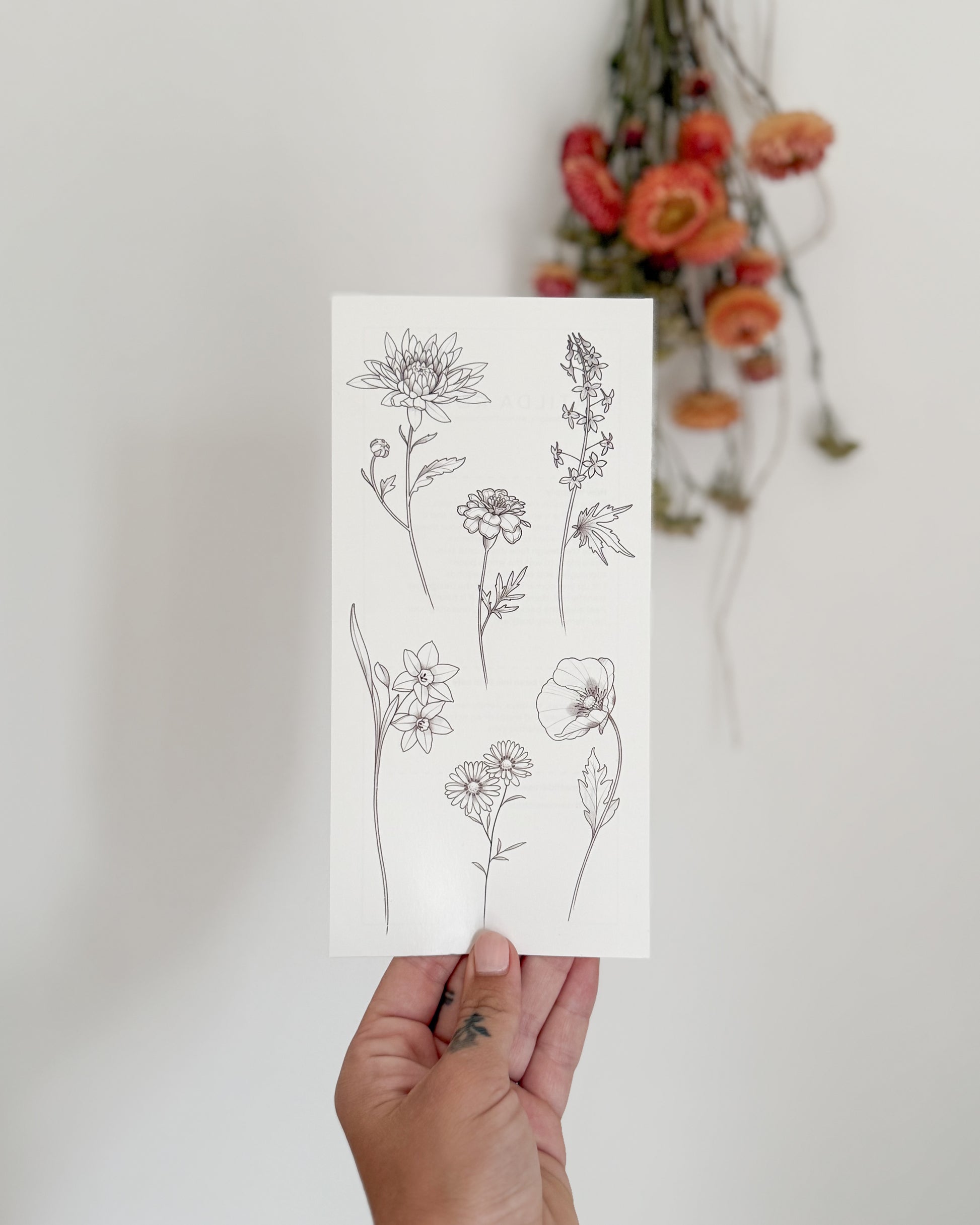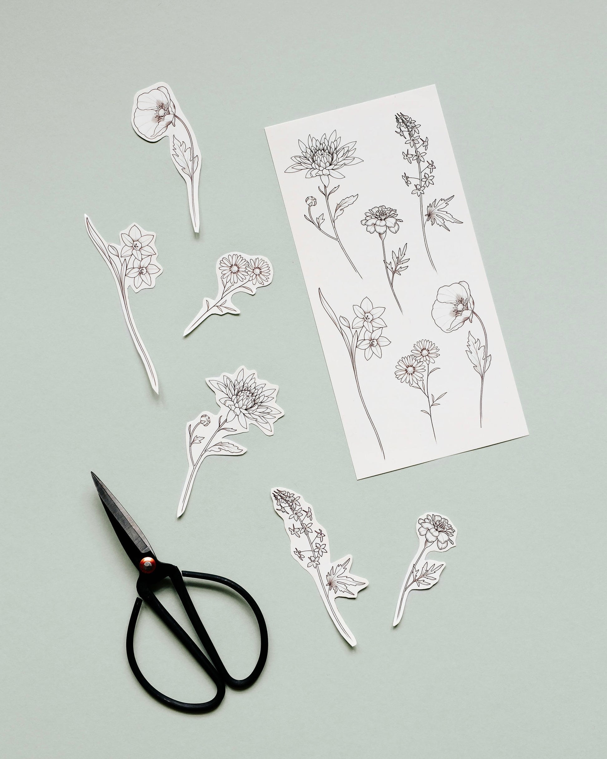 Birth flowers for July to December, designed by tattoo artist Rachael Ainsworth. Rachael uses birth flowers in many of her real tattoo designs to signify loved ones for her clients. It's a really subtle way to give your tattoo deep meaning whilst remaining discreet. Beautiful on their own or create your own composition.