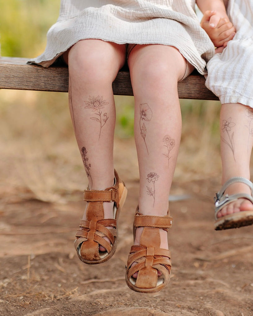The size of the tattoo sheet is 21 x 10cm (8.3 x 4in). Each flower is between 6 x 2cm (2 x 1in) to 10 x 4cm (4 x 2in)